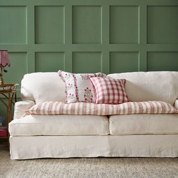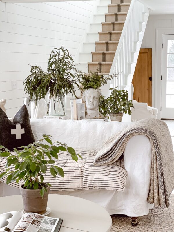 Have you heard about sofa toppers? I may be late to the game but I think this concept is a very good idea to protect your sofa cushions. Yes, I have used blankets and quilts, but this newer style is padded and you can get them in various fabrics.