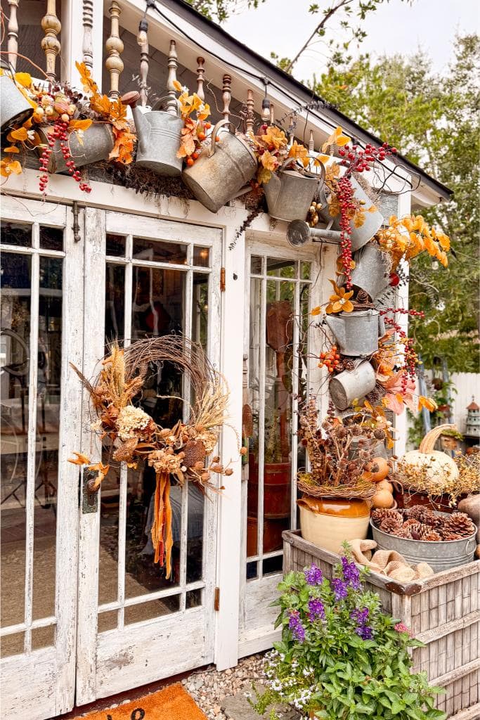 exterior-of-she-shed-decorated-for-fall-She-shed-decorating-ideas-for-fall-galvanized-watering-can-1-1
