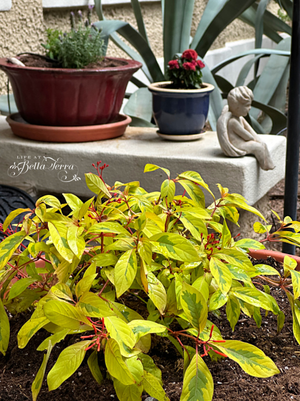 In those parts of the yard that don’t get as much watering, I am experimenting with drought tolerant plants. Isn’t this Firebush Lime Sizzler so pretty with its yellow and green foliage? It is deer resistant (don’t have that issue here) and attracts butterflies and hummingbirds. Currently, Home Depot has their sustainable garden plants from Smart Planet on sale at 20% off.