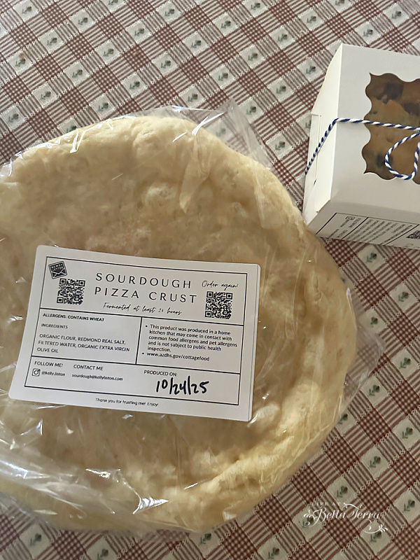 Yesterday, I picked up my first order and am so excited to try this beautiful pizza crust. I’ve already consumed a few of her cookies and I can attest, they are scrumptious.