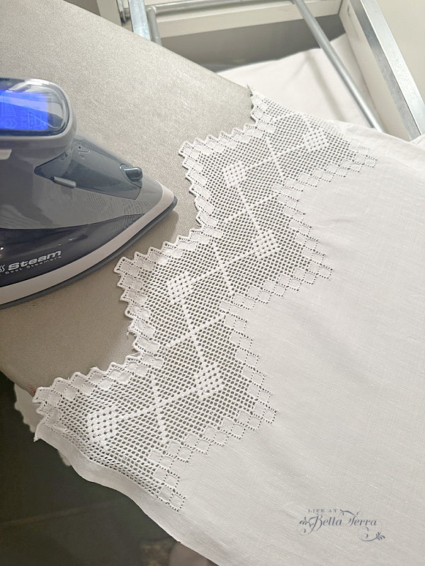These curtains had been tucked away for years—possibly decades—and I had always remembered them as bright white. Time, however, had turned them into more of an ecru. Fortunately, if you ever need to revive linens, I can’t recommend OxiClean enough. Not only is this product a fabulous stain remover, it also eliminates odors. After soaking the curtains in a bowl of OxiClean and water for six hours, they emerged looking wonderfully fresh.