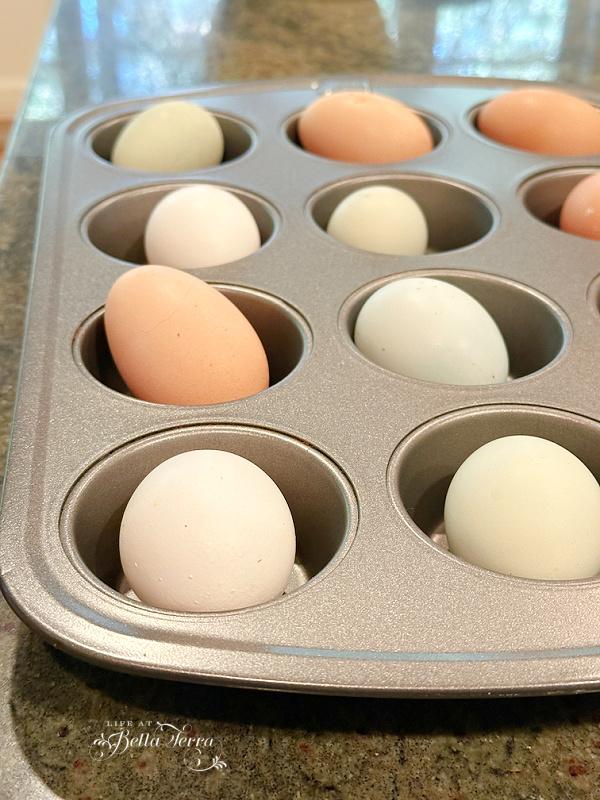 Have you ever made hard-boiled eggs by baking them in the oven? My husband recently tried this method and, well, the jury is still out. Reviews online are good, but mixed. Apparently when you bake eggs in a muffin tin they can develop little brown spots on the shells. Some people claim they’re easier to peel, though that hasn’t been our experience.