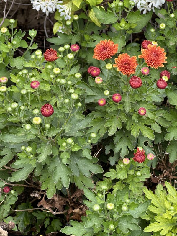 Those pots of chrysanthemums we all pick up in the fall, have found a new life in my front planting bed.