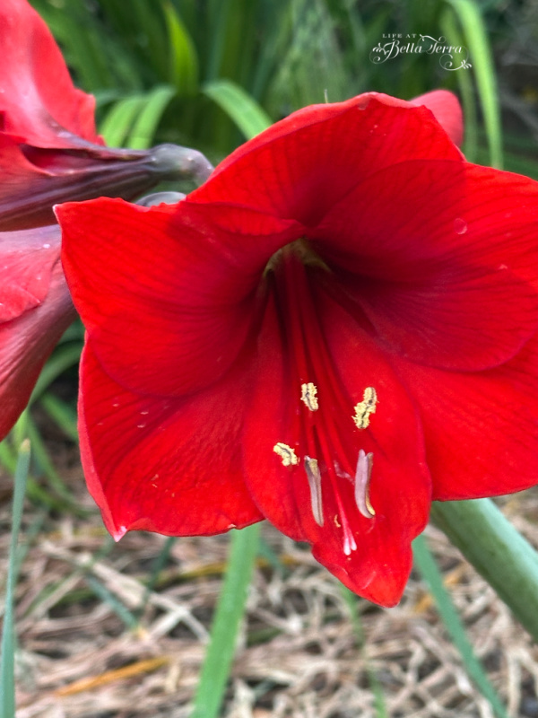 Several of the plants I’ve recycled have settled in beautifully and are blooming again. Amaryllis bulbs from Christmases past, are producing their deep red blooms.