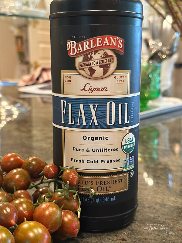 Flaxseed oil is a potent plant-based source of omega-3 fatty acids, which supports heart health, reduces inflammation, and improves skin hydration. It may also help with digestion, cholesterol levels, and overall brain health. Just be sure to choose a high quality organic oil and keep it refrigerated.