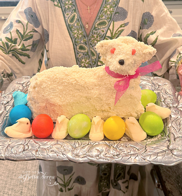 Every year, my mother made her famous lamb cake, and I’ve tried to carry that tradition forward in our family. Using an antique cast iron mold from Griswold Company, I attempt a homemade carrot cake recipe this year-fingers crossed that it will be both tasty and sturdy enough to stand on its own.