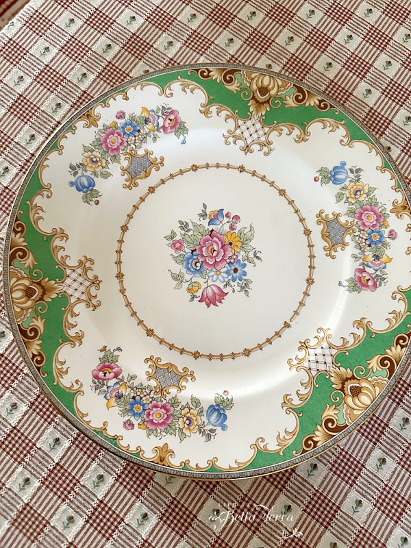 With a smaller group this year, we decided to dine indoors, which gave me the chance to have a little fun setting the table with one of my most recent finds. I absolutely love all the spring colors in this Sheraton English china pattern (No.13290, circa 1925-1960), which I found on eBay at a very reasonable price.
